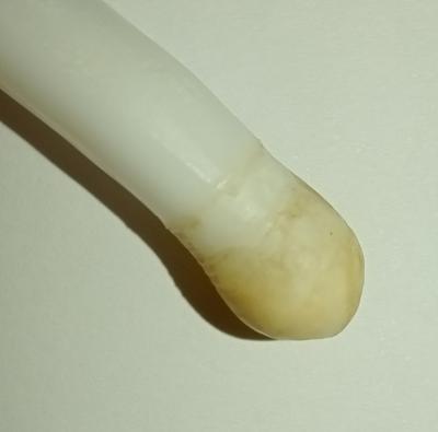 Elongated baroque clam pearl. The head has been worked a bit, possibly.