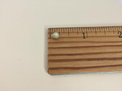 I visited Gibbys in Old Montreal this weekend and ordered OYSTERS ON THE HALF SHELL. As I ate one, I thought I felt a broken piece of the shell in my mouth. Without spitting the oyster onto my plate, I carefully and subtly removed the object from my mouth only to find it was NOT a piece of the shell but actually looked kind of like a popcorn kernel!
