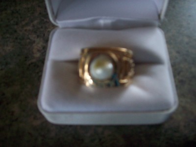 This beautiful natural pearl ring was made for my son. His great grandfather found the pearl when he was working in the Button factory so it is quite old. The pearl is from the Mississippi River and gold streak is natural making it unique as well as beautiful.