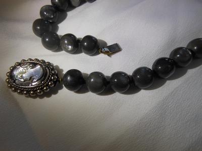 I love this antique necklace. I'm asking for opinions of what kind of antique pearl necklace I have. It's hand knotted round pearls with a mother of pearl cameo framed in gold.