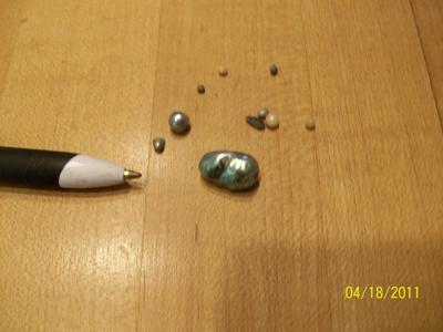 Thanks for the photos of your abalone pearls. The pen next to them helps us see the size. Even though many are small, I still think they are pretty neat and the larger one that you compare to a jelly bean is especially nice. It looks to have a nice color, iridescence and luster.