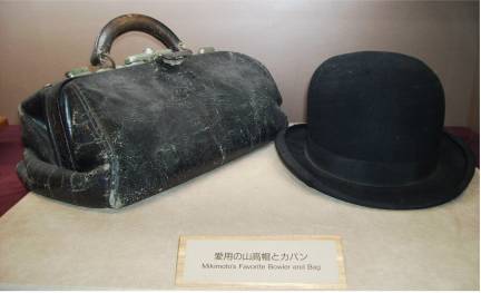 Several photos of Kokichi Mikimoto show him wearing this black bowler hat, common in his day. It reminds me our our favorite old time comedians...Laurel and Hardy. And his famous black "medicine bag," which I can imagine held more pearls than medicine.