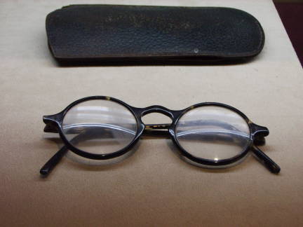 His glasses, which gave him his distinctive appearance, shown here, are one of several pairs he owned. He always prescribed his own lenses.