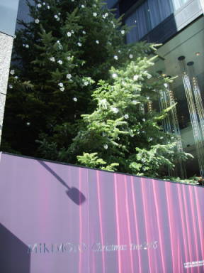 Christmas starts early in Japan, so in mid November outside the Mikimoto Pearl main store Ginza Tokyo stood a 30' decorated Christmas tree.