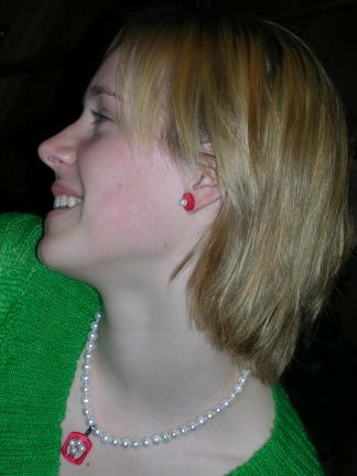 Mother of pearl jewelry crafted from vintage pearl buttons made in Muscatine, Iowa, former "Pearl Button Capital of the World," situated on the banks of the mighty Mississippi River. Muscatine's new title is: "Pearl of the Mississippi". Let Sarah and Tessa show how much fun it is to wear Kari Pearls mother of pearl jewelry. You too will enjoy wearing a piece of American history. Here's a sample of our creations. Big black buttons make great pendants for pearl necklaces.