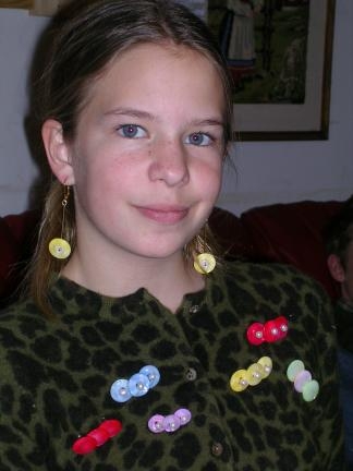 Dangly earrings crafted from two sizes and two colors of buttons...sure to compliment your outfits and get noticed.