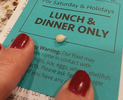 My husband and I were enjoying a a Valentines buffet at Shady Maple Smorgasbord in East Earl, PA. He was eating oyster stew and thought he had a piece of a shell in his mouth. Spit it out and it was instead a pearl! Will just hold on to as a keepsake. 😊