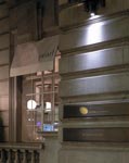 One of the most beautiful and distinctive of these marbles, Swedish green, was used as paneling and columns in the East banking hall. This marble is now so rare that a meter cube costs 30 pounds.