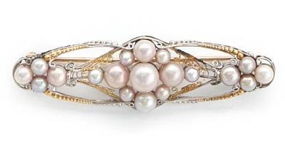 Recently sold at a Bonhams Auction, an early twentieth century pearl brooch, Louis Comfort Tiffany, circa 1910
