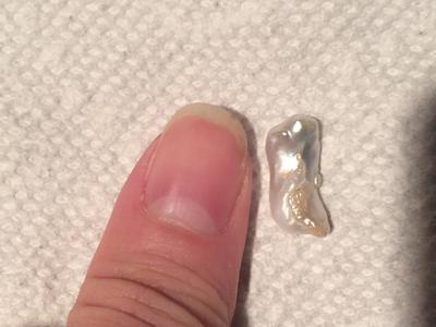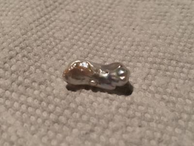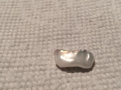 I am on vacation with my mom in Florida. We went to New Smyrna Beach today, which usually does not have hardly any shells on it. But, due to recent storms, the water is very churned up, and there are many small shells on the shore. My mom and I were walking along collecting sea shells today when I stumbled upon this misshapen little thing that I think might be a pearl? I don't know what else it could be. I know pearls are commonly irregular in shape, but this one is super funky. It has some bumps on the surface, and there are a couple tiny holes in it. Could you tell me if it is indeed a pearl?