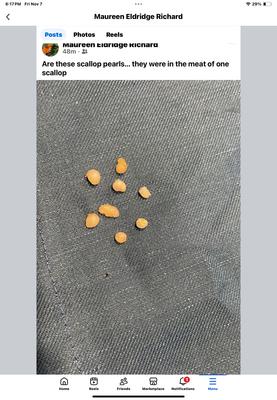 I have been enjoying Bay of Fundy scallops for many years .. Today I found what I assume are scallop pearls… seven in one meat!! I would like someone either to confirm or negate these are pearls
